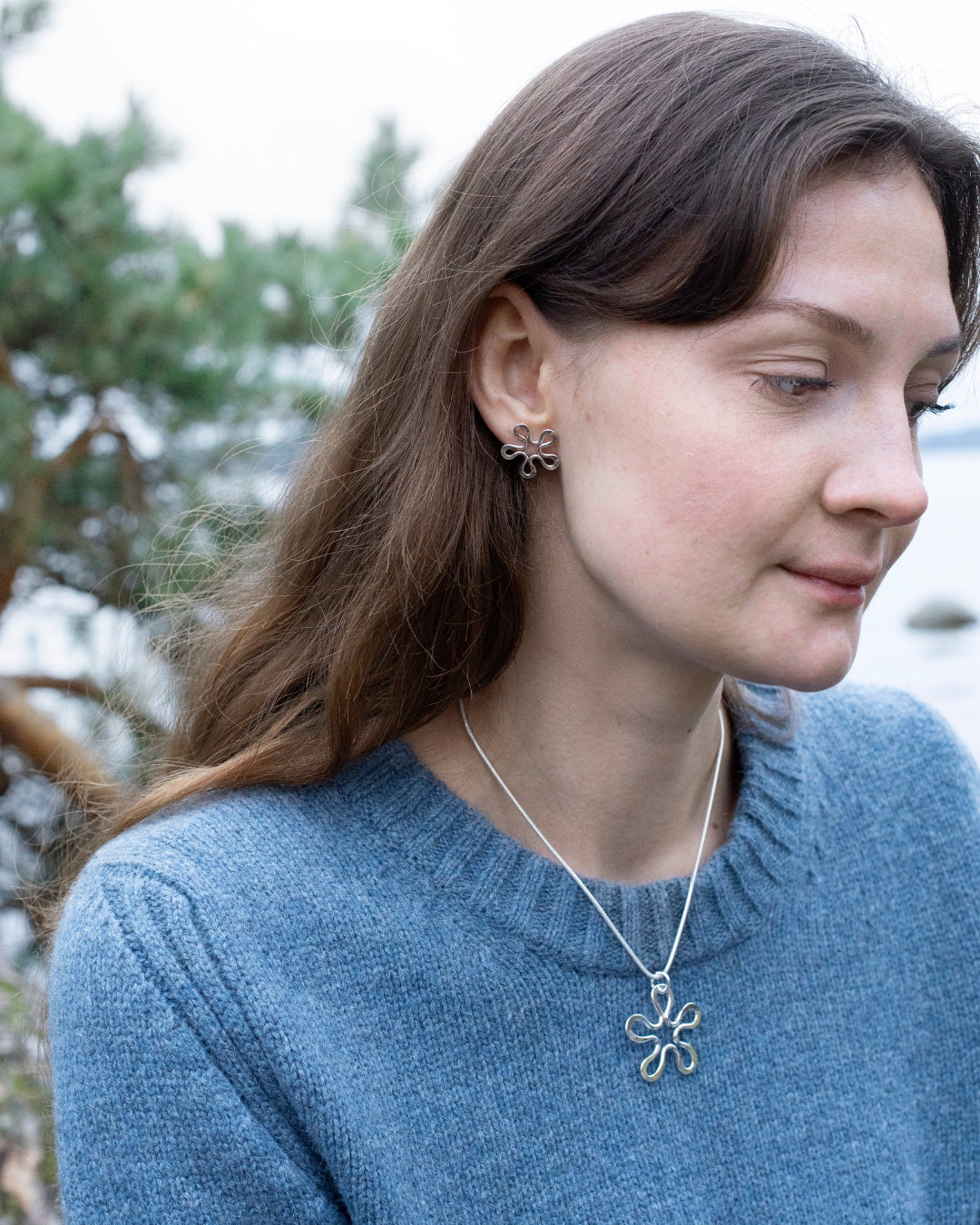 Handgjord i rent guld eller silver är varje Blomman unik. Inspirerad av skärgården är den en symbol för naturens lugn, styrka och harmoni.